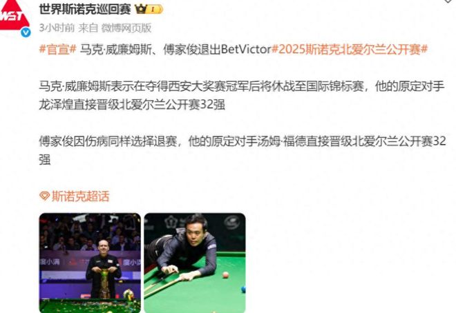 - 2025-10-17马叔夺冠转身退赛,傅家俊再伤缺!北爱公开赛签表又乱了